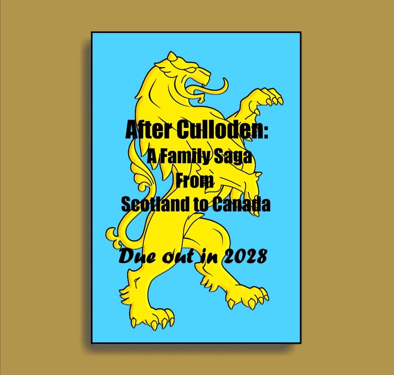 After Culloden is a historical, multi-generational account of how my Fournier, Castagne, Blackburn, McPherson, Cameron, and Fraser ancestors influenced the settlement and development of Canada. The project traces my lineage and connection to all the clan chiefs, their defeat at Culloden, and exiles to the colony. After Culloden, my ancestors' experiences include the Seven Years’ War, their defence against the Continental Army in 1775, their involvement in the fur and lumber industries, and service to Canada in the Great War. After Culloden, thoroughly researched and fully annotated, blends historical narrative with personal reflection to illuminate how my ancestors helped shape the nation that shaped me.